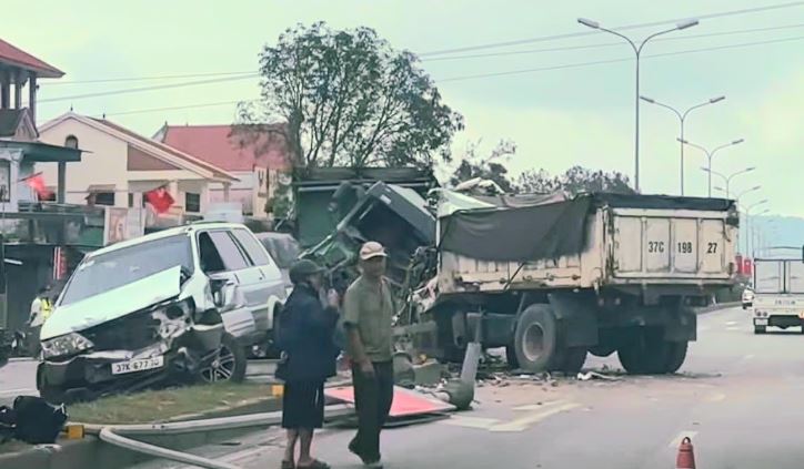 Vụ tai nạn giao thông liên hoàn trên Quốc lộ 1A đoạn qua tỉnh Nghệ An giữa hai xe tải và xe 7 chỗ khiến một tài xế tử vong tại chỗ, hai người khác bị thương.