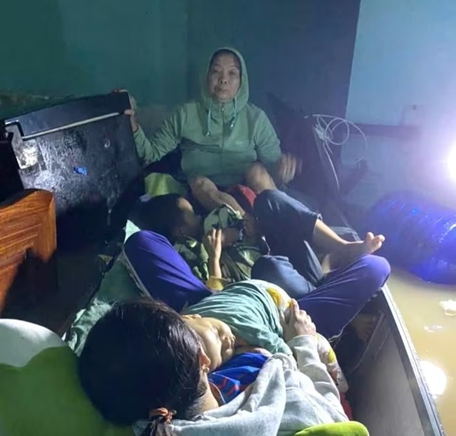 Theo lời chị Đào, nước bắt đầu lên cao từ khoảng 10 giờ sáng. Khi đó, chị đã liên hệ xin ứng cứu nhưng không được. Đến chiều, nước lũ tiếp tục dâng, khoảng 17 giờ chị đã bế hai con trèo lên mái nhà và tiếp tục tìm cách kêu cứu nhưng vẫn không ai tiếp cận được.