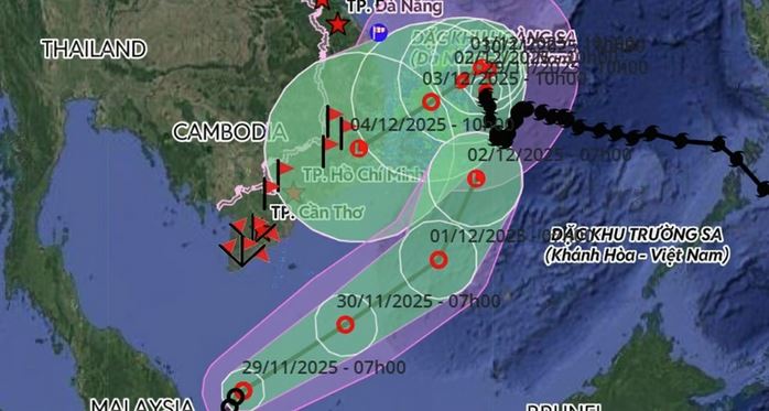 Dự báo trong 3–4 ngày tới, bão vẫn chỉ quanh quẩn ở khu vực giữa Biển Đông, thay đổi hướng liên tục: hôm nay đi lên phía Bắc, ngày 30/11 quay sang phía Tây, ngày 1/12 chuyển hướng Tây Nam và suy yếu dần, mỗi ngày giảm một cấp.