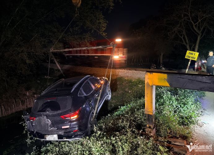 Khi chiếc xe đang băng qua đường ray, tàu hàng mang số hiệu 3606 lao tới, đâm mạnh vào phần đuôi xe. Lực tông lớn khiến ô tô mất kiểm soát, văng trực tiếp xuống mương thủy lợi bên cạnh đường ray.