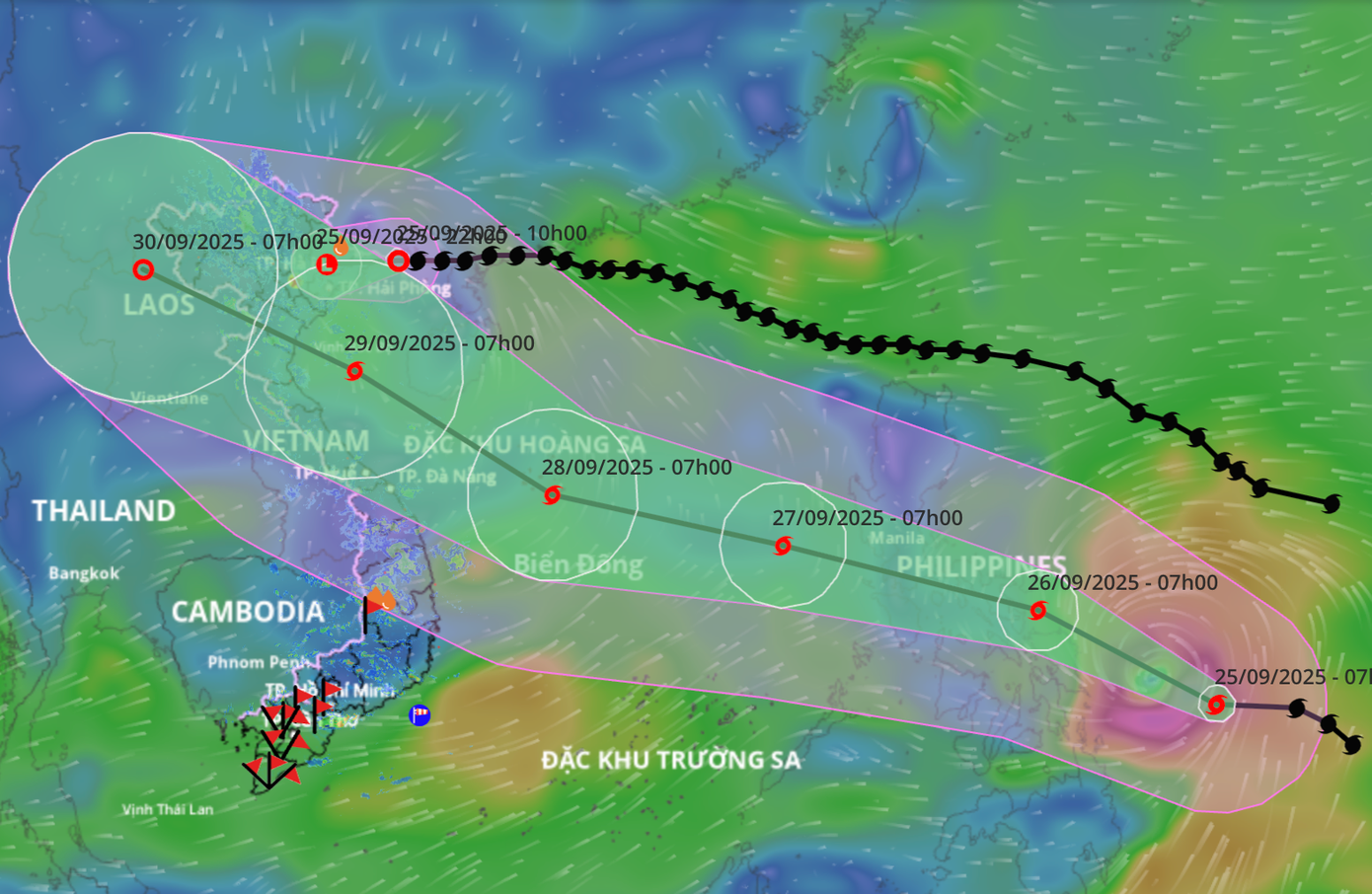 Dự báo khoảng đêm 26/9, bão Bualoi sẽ đi vào vùng biển phía đông khu vực Giữa Biển Đông, trở thành cơn bão số 10 năm 2025.