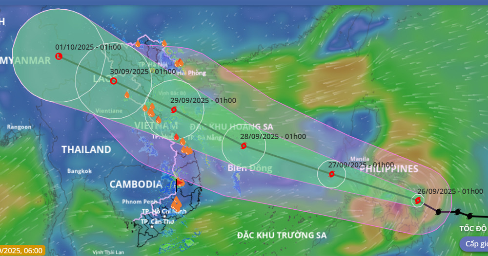 Dự báo khoảng đêm nay (26/9), bão Bualoi sẽ đi vào vùng biển phía Đông khu vực giữa Biển Đông, trở thành cơn bão số 10 năm 2025.