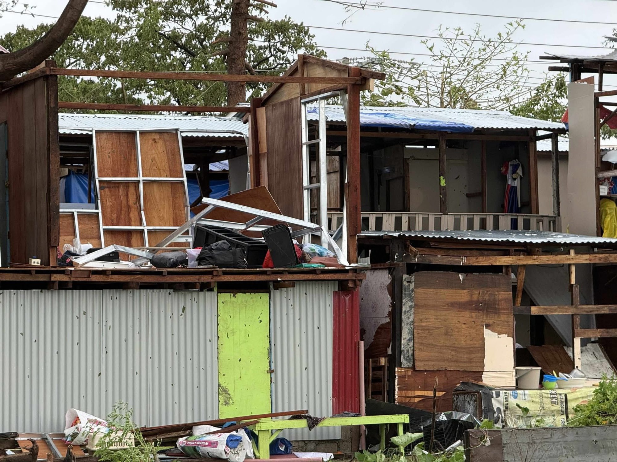 Nhiều ngôi nhà xây bằng vật liệu nhẹ bị phá hủy hoàn toàn dưới sức gió dữ dội của bão