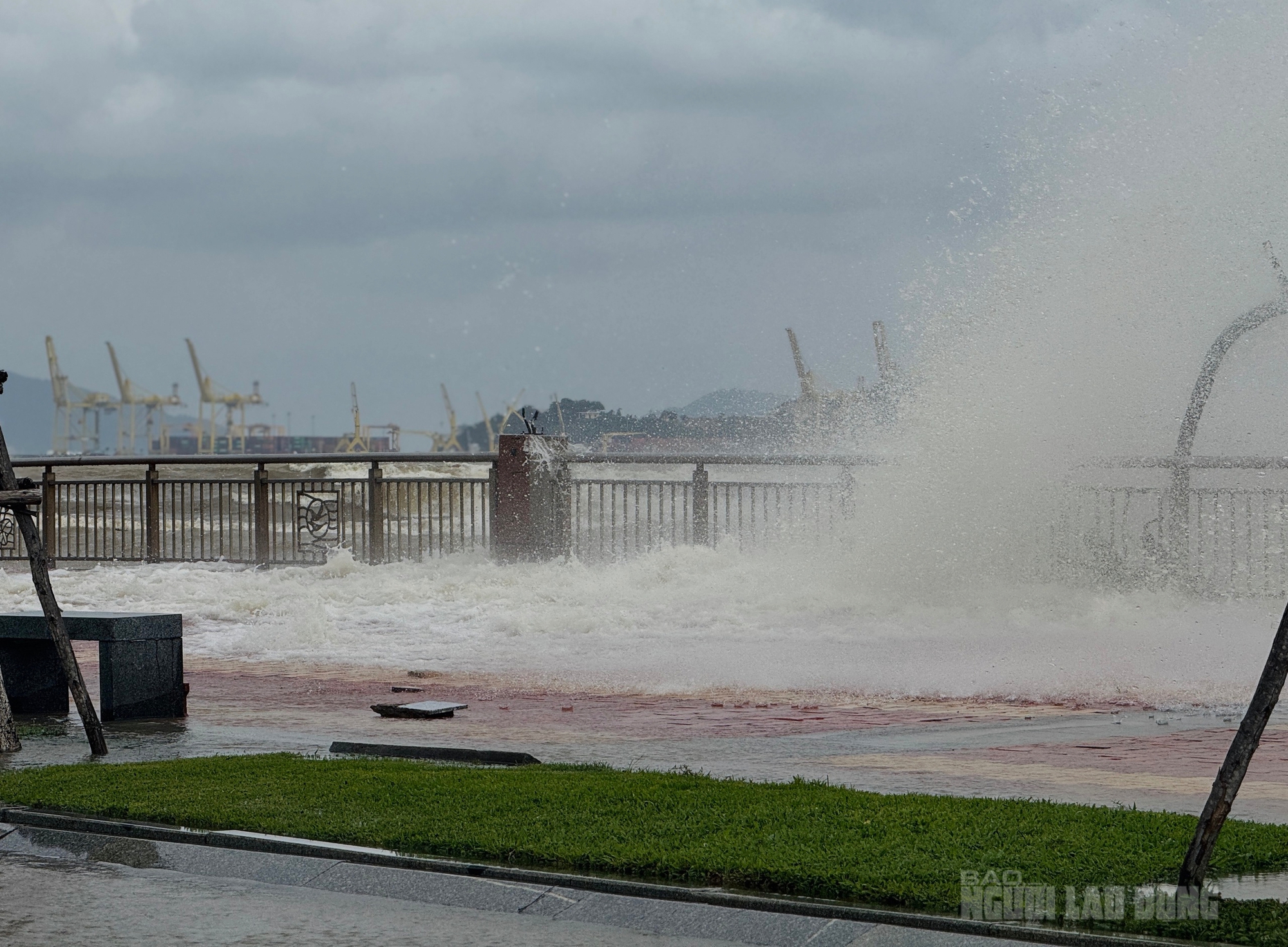 Sóng đánh rất mạnh ở sông Hàn sáng nay – Ảnh: Người lao động