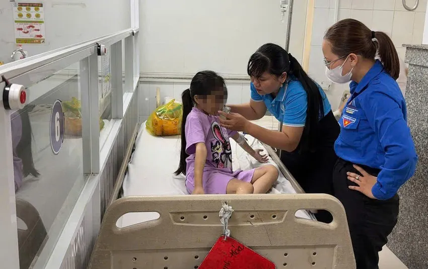 Thời điểm đang điều trị tại bệnh viện, đoàn thanh niên, hội phụ nữ của phường Tân Uyên đã túc trực chăm sóc cho bé gái.