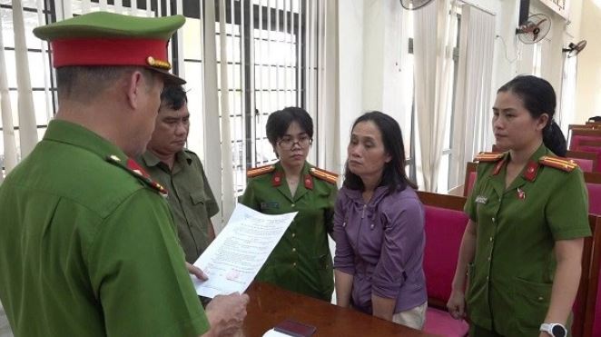 Công an đọc lệnh khởi tố, bắt tạm giam bà Cao Thị Bé. Ảnh: Công an TP Đà Nẵng.