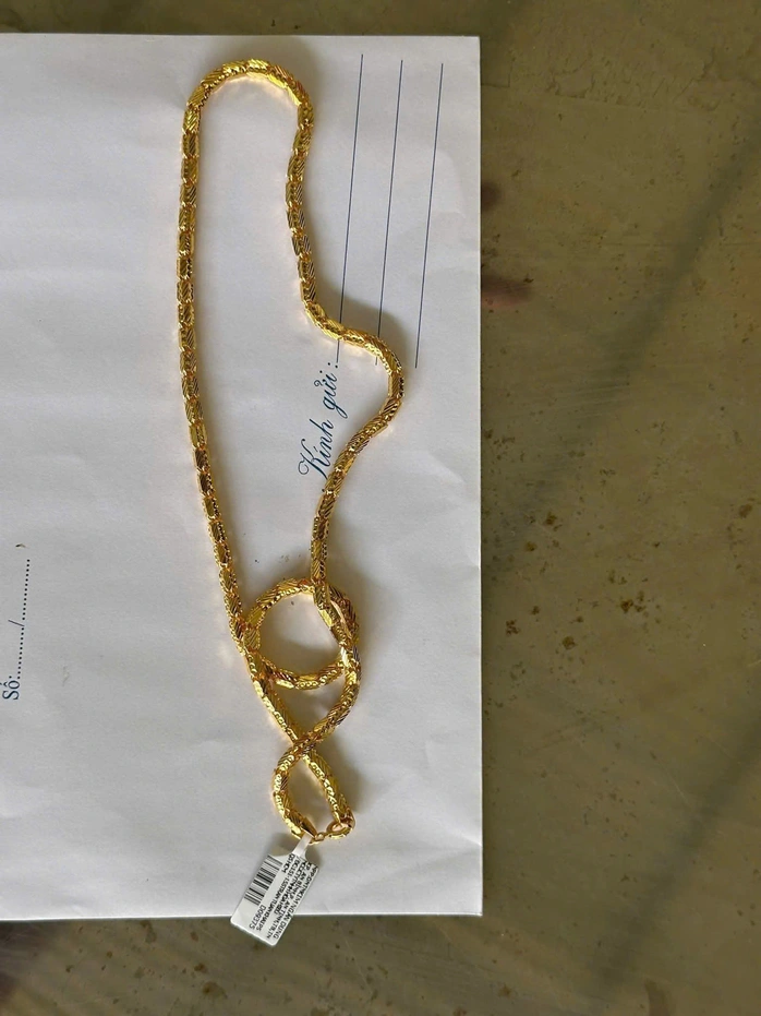 Theo thông tin ban đầu, Hiếu đến tiệm vàng hỏi mua hàng. Trong quá trình giao dịch, nhân viên tiệm vàng đưa cho Hiếu một sợi dây chuyền vàng 18K để xem và lựa chọn.