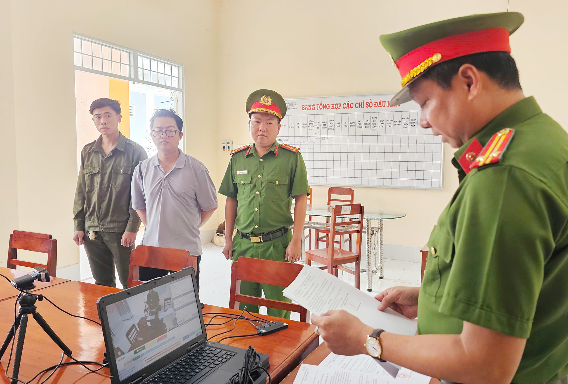 Cơ quan Công an thi hành các quyết định tố tụng đối với Phạm Duy Tân. Ảnh: Công an tỉnh Vĩnh Long