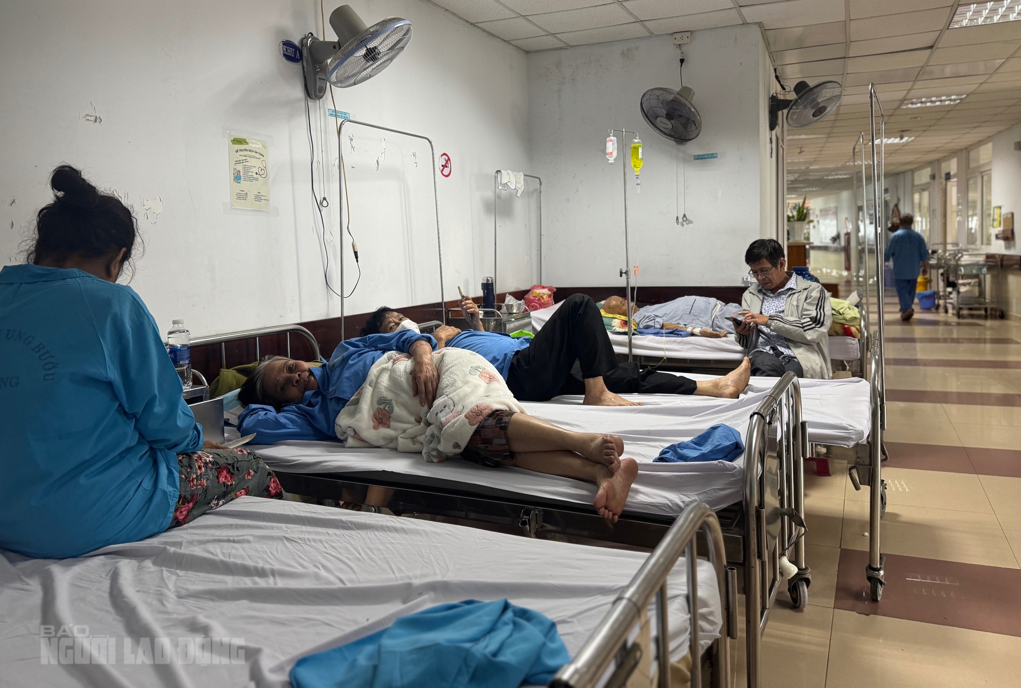 Một số giường bệnh cũng kê ngoài hành lang do phòng bệnh quá tải