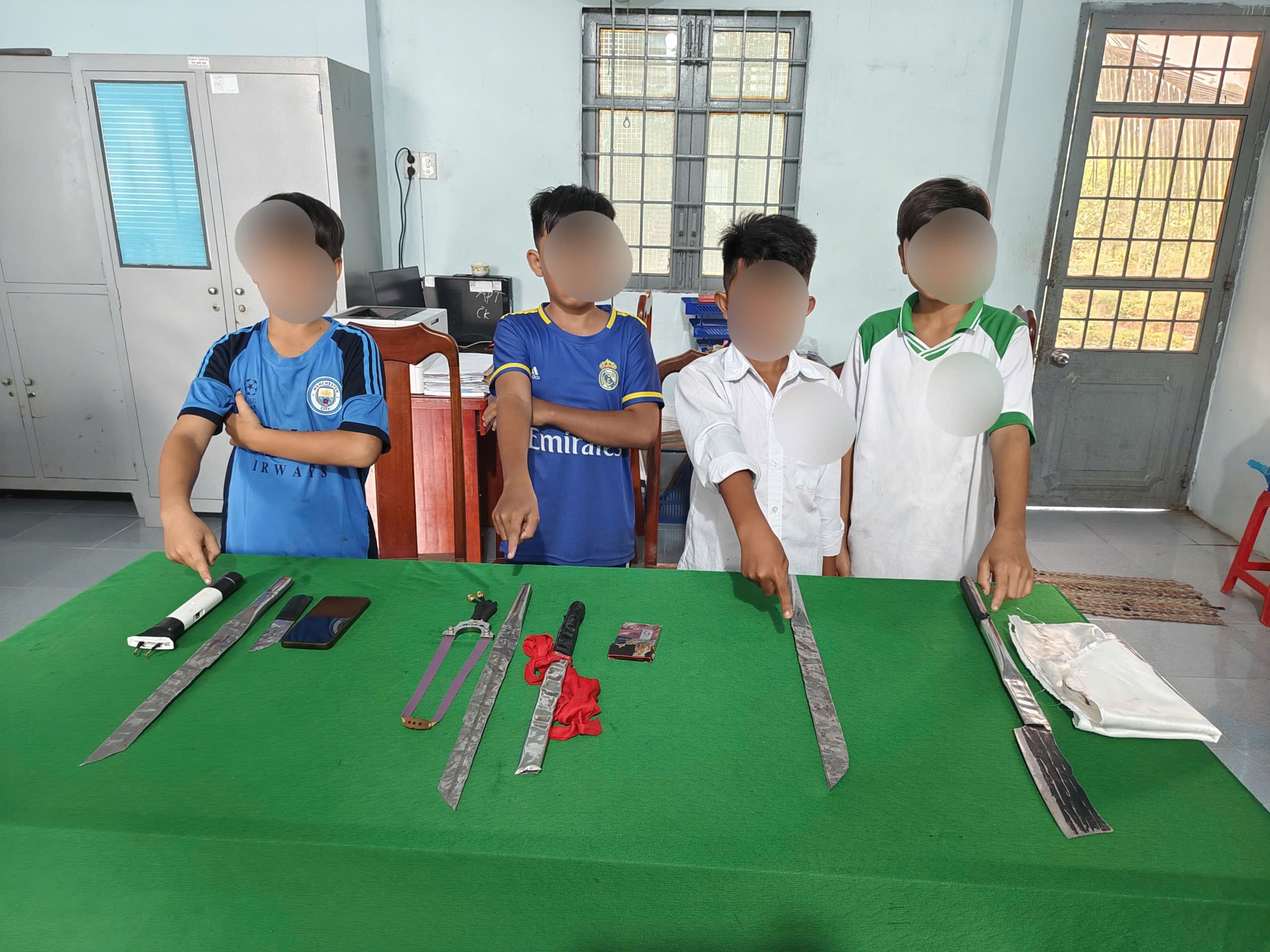 Theo đó, vào ngày 27/11/2025, phía trước khu vực một trường Trung học cơ sở trên địa bàn xã, Công an xã đã phát hiện nhóm 04 học sinh lớp 6 có hành vi tụ tập, mang theo hung khí tự chế với mục đích đánh nhau.