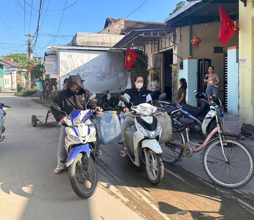 Mỗi khi phát hiện nhà nào còn nước, người dân lại mang theo xô, chậu, can nhựa đến xin về dùng tạm. Cảnh tượng người lớn, trẻ nhỏ xếp hàng chờ lấy nước diễn ra nhộn nhịp giữa xóm nhỏ. Có người dùng xe đẩy chở can nước, có người thức đêm canh từng đợt nước chảy nhỏ giọt.