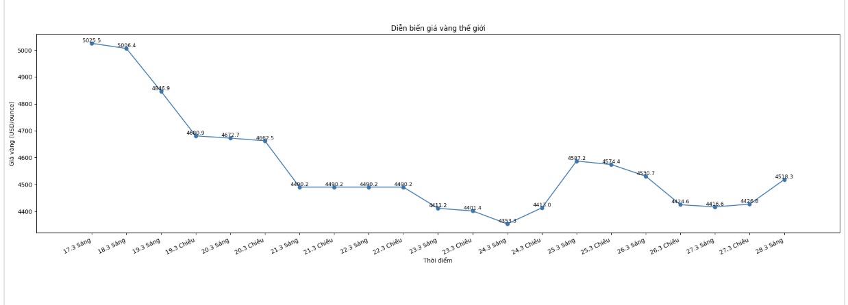 Diễn biến giá vàng thế giới những phiên giao dịch gần đây. Biểu đồ: Khương Duy