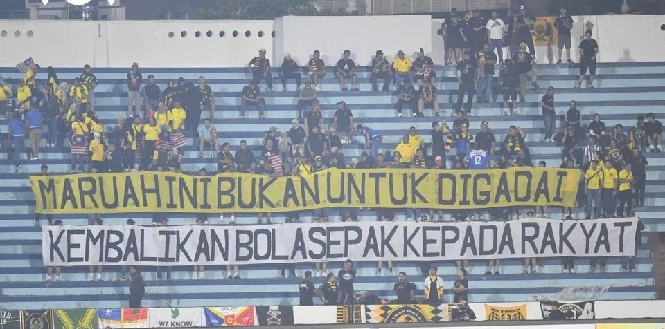 Trên khán đài, CĐV đội khách giăng biểu ngữ với thông điệp: “Danh dự không phải để mua bán, hãy trả lại bóng đá cho người dân”. Động thái cho thấy làn sóng phản ứng mạnh mẽ từ người hâm mộ “Hổ Malay” về vấn đề nhập tịch khiến đội nhà bị xử thua 2 trận