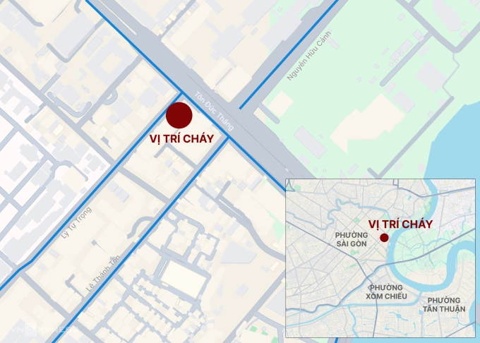 Vị trí spa cháy ở trung tâm TP HCM. Đồ họa: Hoàng Thanh