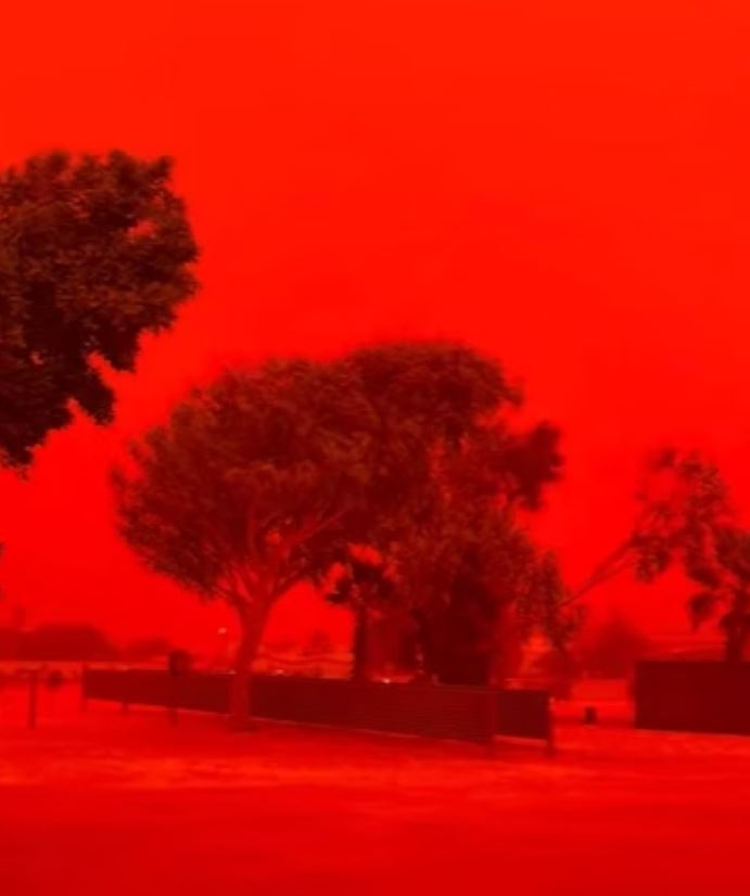 Bầu trời xanh ngắt tại bang Tây Australia bỗng chốc bị “nhuộm” một màu đỏ sẫm kỳ dị, biến khung cảnh ban ngày trở nên mờ ảo như chạng vạng. Hiện tượng thiên nhiên hiếm gặp này khiến không ít người dân hoang mang, ngỡ như đang bước vào một bộ phim khoa học viễn tưởng hay đang đứng trên sao Hỏa.