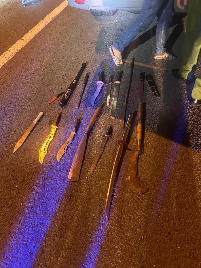 Lực lượng đã đưa tất cả những người này về trụ sở làm việc, cùng 16 hung khí tự chế các loại (dao tự chế, dao phóng lợn, gậy bóng chày,…) thu giữ được tre6n xe.