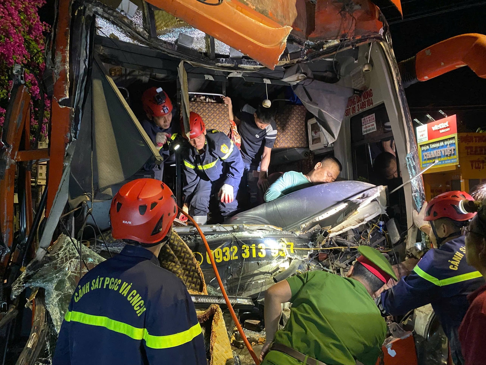 Công an Quảng Ngãi nỗ lực giải cứu tài xế xe khách mắc kẹt trong ca bin sau tai nạn