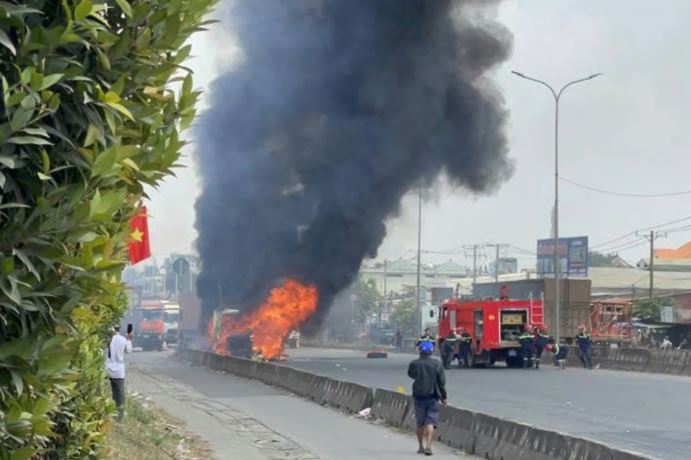 Trưa 15/1, một vụ cháy xe container xảy ra trên Quốc lộ 51, đoạn qua địa bàn tỉnh Đồng Nai, khiến khói đen bốc cao ngùn ngụt và giao thông qua khu vực rơi vào tình trạng ùn tắc nghiêm trọng.