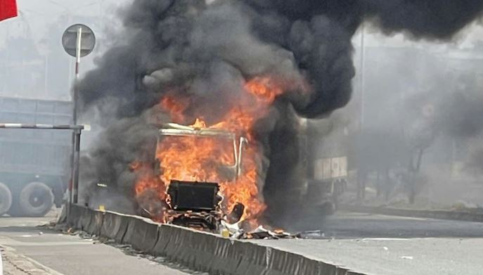 Tuy nhiên, chỉ trong thời gian ngắn, ngọn lửa đã lan nhanh và bùng phát dữ dội, bao trùm toàn bộ phần đầu xe. Cột khói đen dày đặc cuồn cuộn bốc cao hàng chục mét, khiến nhiều người lưu thông qua khu vực không khỏi hoảng hốt.
