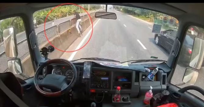 Tình huống trở nên cực kỳ nguy hiểm khi cháu bé chui qua khe hở của dải phân cách cứng để sang làn đường ngược lại, ngay thời điểm nhiều phương tiện đang lao tới với tốc độ cao. Nhận thấy tai nạn khó tránh khỏi nếu không can thiệp kịp thời, anh Tố lập tức nhấn phanh, liên tục bấm còi để cảnh báo các xe phía sau rồi nhanh chóng mở cửa cabin, lao thẳng ra giữa đường.