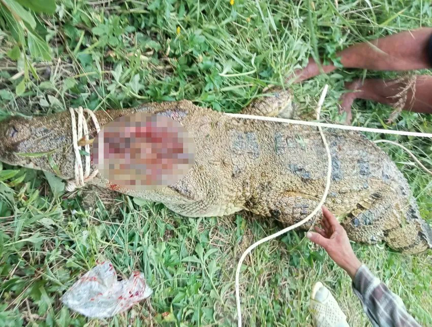 Sau nhiều ngày truy lùng, lực lượng chức năng tỉnh Khánh Hòa đã bắt được con cá sấu tấn công người đi câu cá trên sông Chò đoạn quan thôn Xuân Tây, xã Diên Lâm.