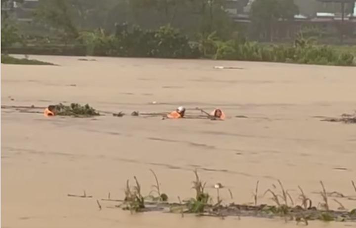 Đại uý công an lao xuống dòng lũ dữ cứu người phụ nữ bị cuốn trôi