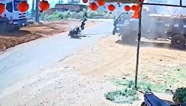 Theo hình ảnh trong clip, nam thanh niên điều khiển xe máy lưu thông trên đường thì bất ngờ vướng phải một sợi dây được căng ngang, nối giữa hai xe tải. Cú va chạm khiến nạn nhân ngã mạnh xuống đường, đau đớn kêu cứu. Ngay sau đó, hai người đàn ông từ hai xe tải cùng người dân xung quanh đã nhanh chóng chạy tới hỗ trợ, đưa nạn nhân vào lề đường.