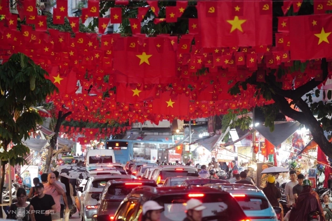 Đường phố Hà Nội rợp bóng cờ dịp lễ Quốc khánh năm 2025. Ảnh: Ngọc Thành