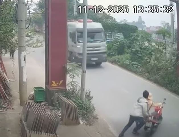 Gã đàn ông đẩy CSGT ra trước đầu xe tải đang lao tới.