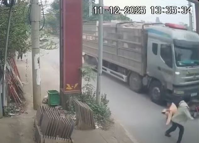 Clip nam thanh niên cố tình đẩy cảnh sát giao thông vào đầu xe tải đang lao đến rồi bỏ chạy
