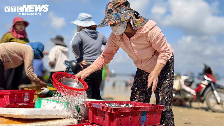 Những ngày sau Tết Nguyên đán Bính Ngọ 2026, khu vực ven bờ làng Châu Thuận Biển (xã Đông Sơn, tỉnh Quảng Ngãi) tràn ngập bầu không khí nhộn nhịp với cảnh mua bán hải sản tấp nập.