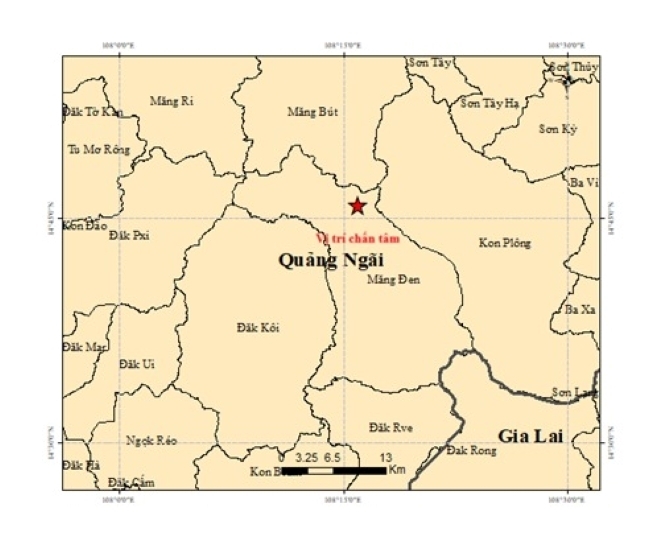 Trận động đất có độ lớn 3.7; rủi ro thiên tai cấp 0 được ghi nhận tại khu vực xã Măng Đen, tỉnh Quảng Ngãi. Độ sâu chấn tiêu khoảng 8,1 km.