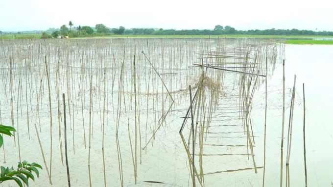 Ruộng bị ngập ở xã Phú Hòa do vỡ bờ bao. Ảnh: Thái Hà