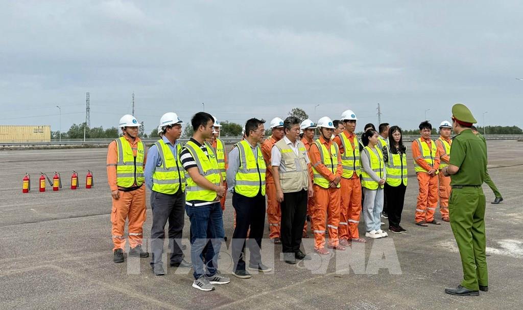 Tập huấn công tác PCCC cho cán bộ, nhân viên điểm dừng nghỉ trước khi đưa điểm dừng nghỉ vào vận hành. Ảnh: Đoàn Hữu Trung-TTXVN