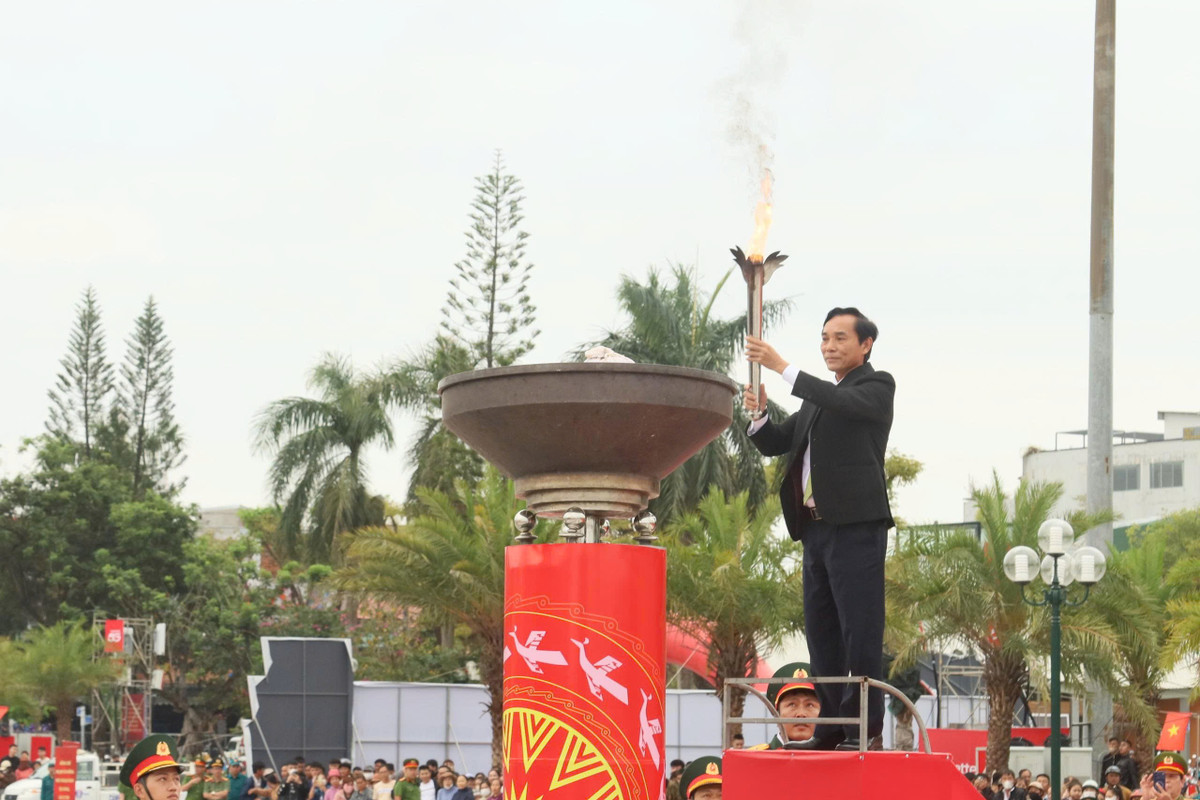 Sau nghi thức gióng trống, thắp đuốc truyền thống, các đại biểu đã tặng hoa, động viên tân binh trước giờ lên đường. Trong sắc xanh quân phục còn mới, từng thanh niên chỉnh tề hàng ngũ, bước qua cầu vinh quang lên xe về đơn vị nhận nhiệm vụ trong không khí chia tay đầy bịn rịn, những tràng vẫy tay chào tạm biệt đầy lưu luyến của gia đình, người thân.