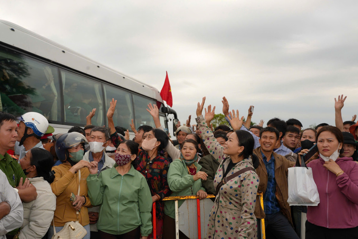 Thân nhân, gia đình tiễn các tân binh lên đường nhập ngũ, thực hiện nghĩa vụ thiêng liêng.