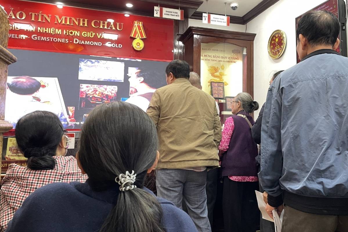Giá vàng sụt giảm, phòng ngồi chờ thanh toán theo hình thức chuyển khoản, số lượng người mới đến liên tục tăng. Ảnh: Hạ Linh