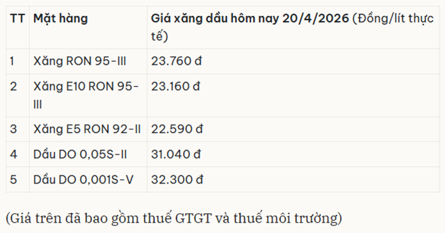 Giá xăng dầu trong nước hôm nay 20/4