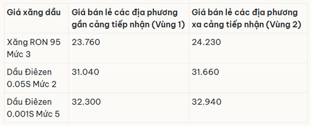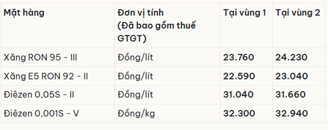 Trong kỳ điều hành mới nhất, xăng RON95-III tăng 220 đồng/lít lên 23.760 đồng/lít; xăng E5RON92 tăng 250 đồng/lít lên 22.590 đồng/lít; xăng E10 tăng nhẹ lên 23.160 đồng/lít.