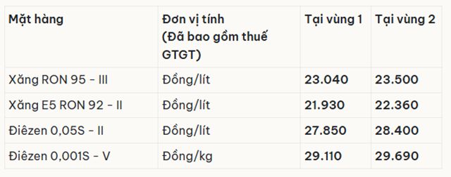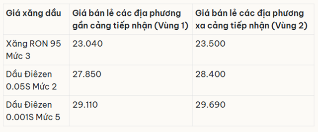 • Xăng RON95-III: không cao hơn 23.042 đồng/lít