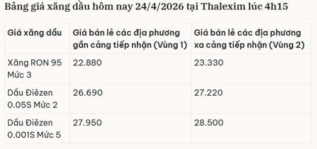 Bảng giá xăng dầu hôm nay 24/4/2026 tại Thalexim