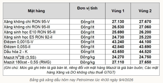 Bảng giá xăng dầu hôm nay ngày 9/4 Petrolimex