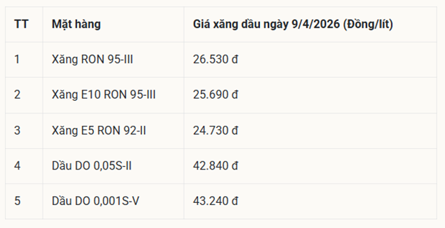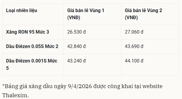 Giá xăng dầu hôm nay ngày 9/4 tại Thalexim