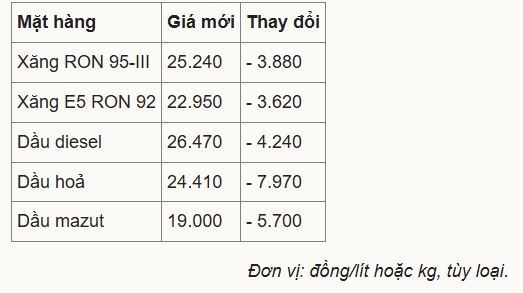 Nguồn VNE: https://vnexpress.net/gia-xang-giam-gan-4-000-dong-mot-lit-5049264.html