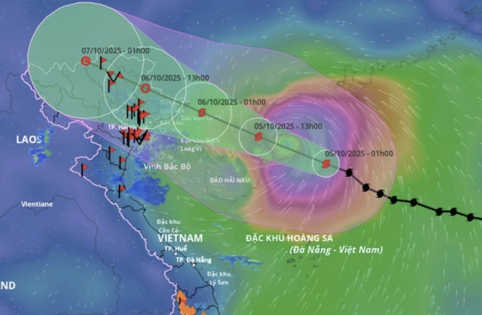 Từ đêm nay đến hết đêm 7/10, vùng núi, trung du Bắc Bộ mưa 150-250 mm, cục bộ trên 400 mm; đồng bằng Bắc Bộ, Thanh Hóa mưa 70-150 mm, cục bộ trên 200 mm. Hà Nội ít khả năng chịu ảnh hưởng của gió bão nhưng từ gần sáng mai mưa 70-120 mm, cục bộ trên 150 mm.