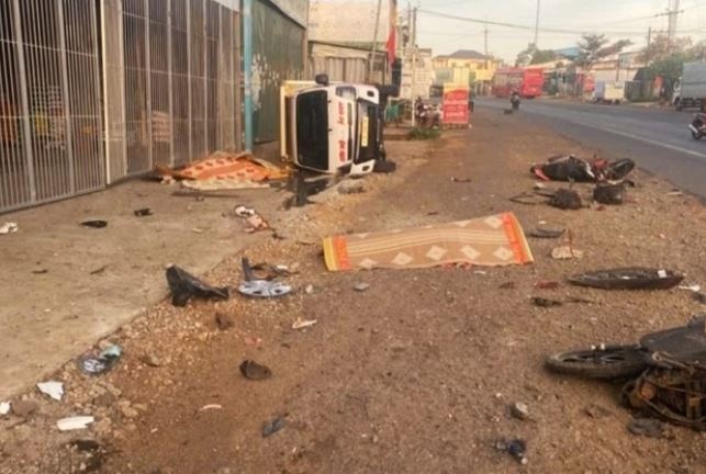 Cú va chạm khiến xe tải quay ngang, lao sang làn đường ngược chiều và đâm trúng hai xe máy đang lưu thông. Hậu quả, chị Đinh Thị Oanh (39 tuổi, trú xã Nhân Cơ) tử vong tại chỗ; hai người khác bị thương nặng, được đưa đi cấp cứu.