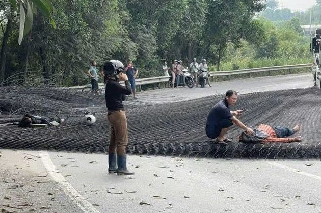 Đôi nam nữ chạy xe máy hướng ngược lại không kịp né tránh, bị thép va trúng và ngã quỵ. Một số xe phía sau may mắn phanh kịp, tránh được va chạm liên hoàn.