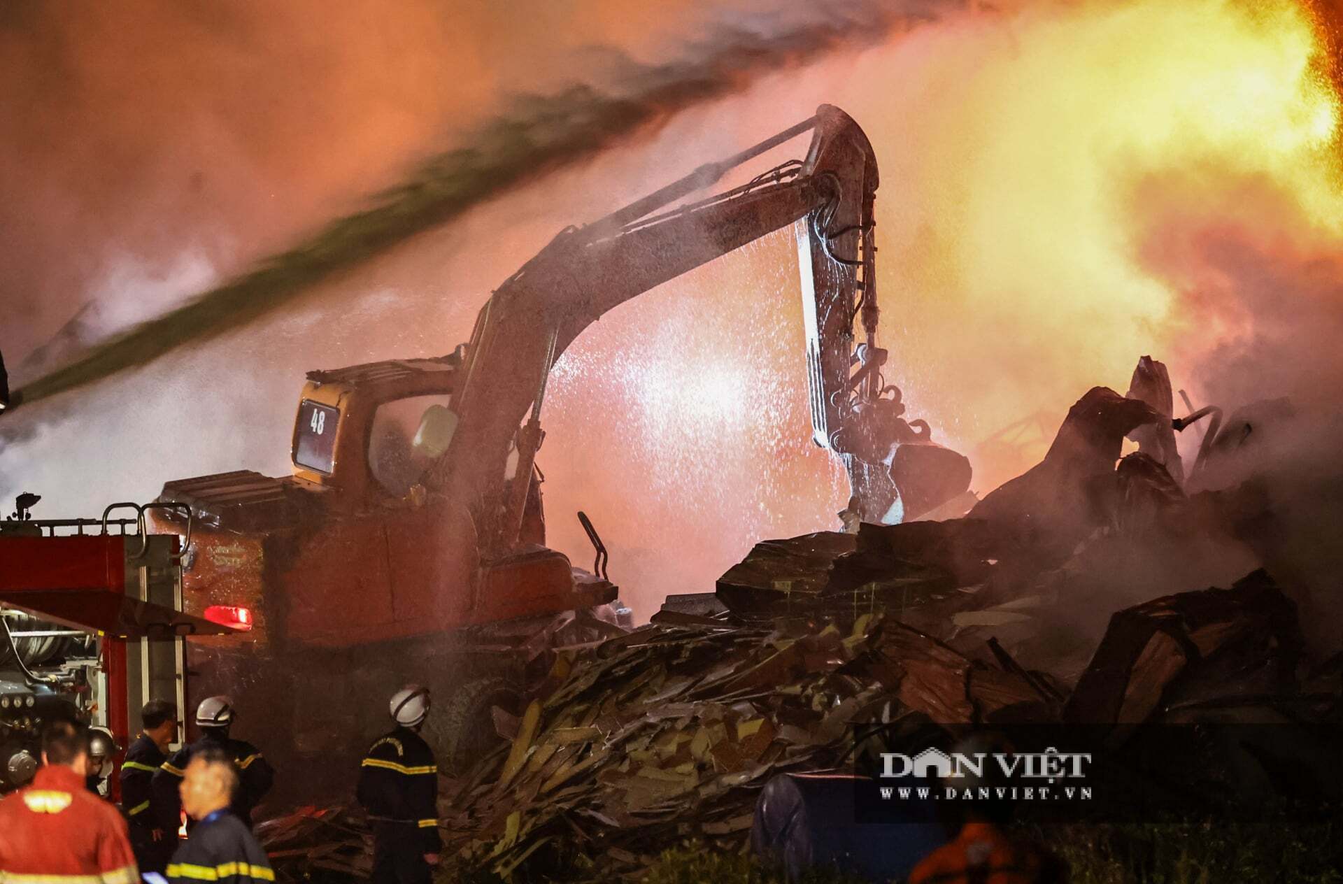 Bên trong hiện trường, cảnh sát huy động cả máy xúc, máy cẩu để phá dỡ kết cấu khu nhà xưởng để dễ dàng tiếp cận, dập tắt vụ cháy. Ảnh: Dân Trí