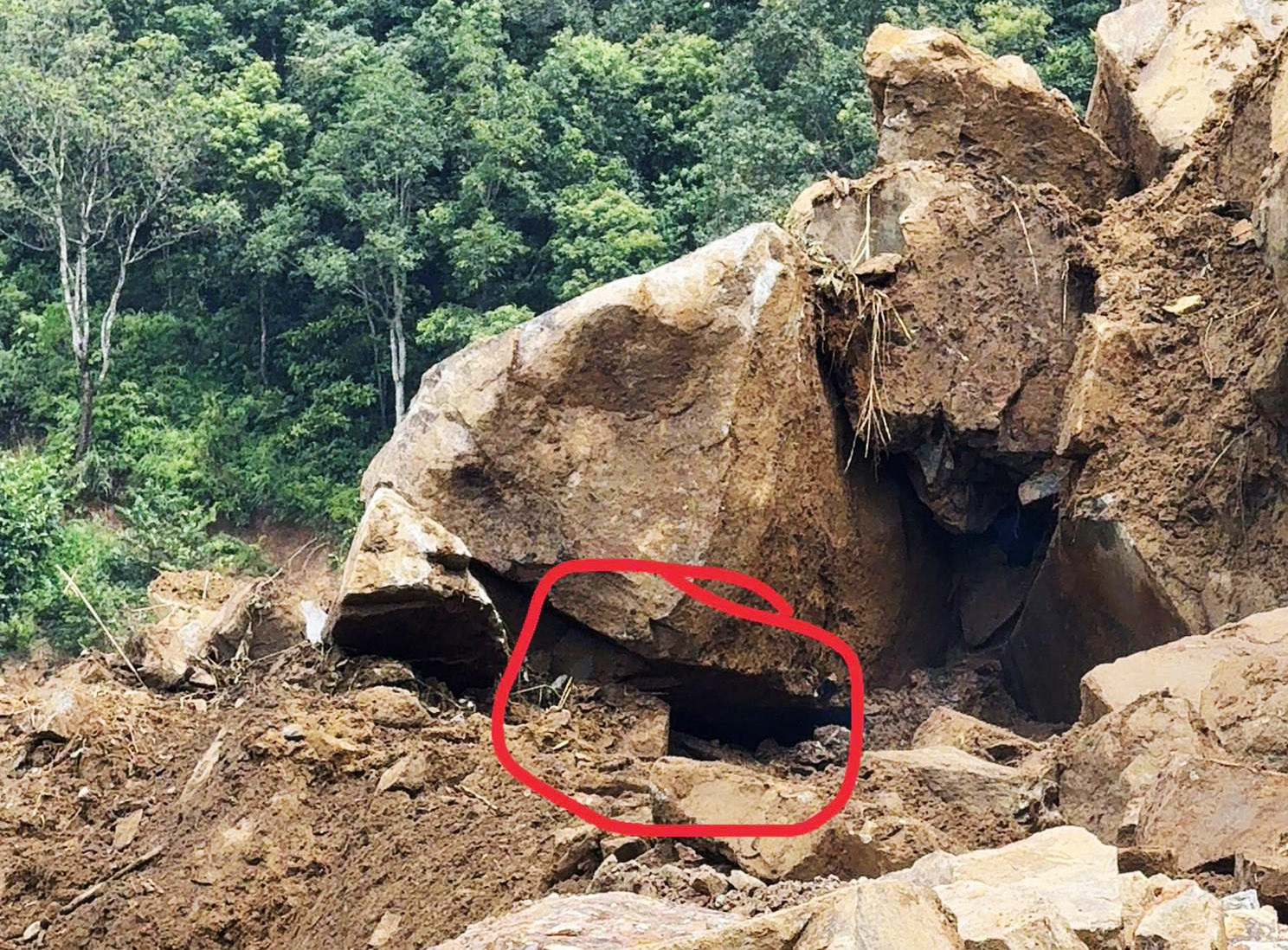 Xe ô tô bán tải nằm sâu dưới lớp đất đá sạt lở. Ảnh: CACC