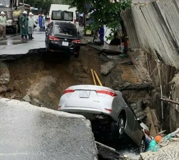 “Hố tử thần” bất ngờ xuất hiện ở Đà Nẵng, “nuốt chửng” 2 xe ô tô
